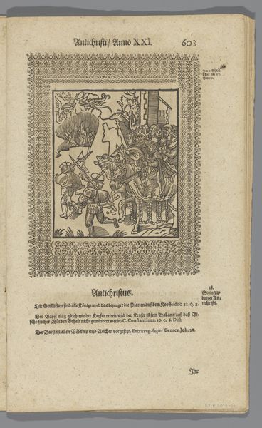 Monogrammist GK produced this print, Paus laat zich kronen met tiara, sometime in the 17th century. The print appears as an illustration within a book, likely offering a commentary on religious or political authority. During this period, religious and political landscapes were undergoing significant upheaval, marked by conflicts between Protestants and Catholics. The print engages with the charged debates surrounding the authority of the papacy, particularly within Protestant circles. The scene depicts the Pope being crowned with a tiara, which, in the cultural context of the time, symbolized not just religious but also worldly power. The act of crowning, traditionally a symbol of legitimate authority, is rendered here with a critical eye, suggesting themes of corruption. This image doesn't merely depict a historical event; it encapsulates a struggle over legitimacy, identity, and power. It reflects societal anxieties about religious authority, inviting viewers to reflect on the complex interplay between faith, power, and representation.