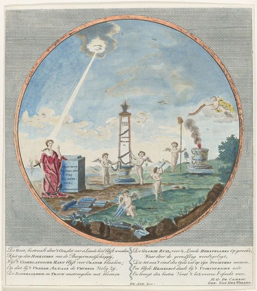 This allegorical print, made in 1787 by an anonymous artist, commemorates the establishment of the Oprechte Vaderlandsche Sociëteiten, or Honest Patriotic Societies. These societies emerged during a period of political and social upheaval in the Netherlands, marked by tensions between the ruling House of Orange and the Patriot movement. The print is rich with symbolism reflecting the complex interplay of identity, loyalty, and national pride. The central column dedicated to "Willem V" is adorned with cherubs, representing divine support for the House of Orange, while the figure of the Dutch Maiden on the left embodies the ideals of liberty. But who is liberty for? The Dutch Maiden and the societies sought to define what it meant to be Dutch at a time of social and political polarization. What does it mean to be a patriot, and who gets to decide? This print invites us to reflect on the competing visions of Dutch identity. It explores how collective memory and political ideology can intertwine to shape a nation’s sense of self.