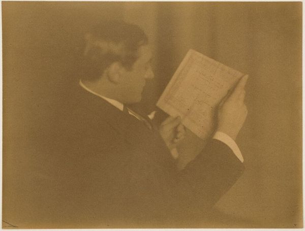 Paul L. Anderson made this photograph of Karl Struss with some kind of camera and darkroom process. It's got that old-timey sepia tone, and the lighting is so dramatic, casting shadows that really define the space. I love the way Anderson plays with light and shadow, especially on the patterned backdrop. It gives the image a dreamy, almost painterly quality. You can almost feel the texture of the paper and the subtle gradations of tone. It's like Anderson is not just capturing a likeness, but also exploring the possibilities of the photographic medium itself. The way he holds that little photograph is the best, it is like he is looking at a captured moment, just as we are now looking at him, decades later. It reminds me a little of some of Alfred Stieglitz's portraits, with their emphasis on mood and atmosphere. But there's something uniquely Anderson's in the way he captures the sitter's introspective gaze. It feels like a conversation across time.