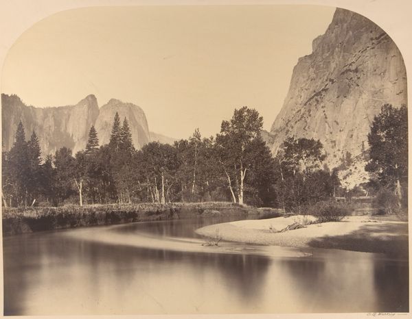 Carleton Watkins captured this landscape with albumen silver print. Dominating the vista is the imposing North Dome, flanked by the Royal Arches and Washington Column, symbols of nature’s architectural prowess. The arch motif, nature's gateways, echoes through time. Think of the triumphal arches of ancient Rome, or the gothic arches of medieval cathedrals. Here, the Royal Arches appear in an act of mirroring, as the domes are reflected in the calm river below. The natural arch, a symbol of transition and passage, is not merely structural; it touches something deep within us. It's as if the collective memory, a shared subconscious, recognizes this form, imbuing it with the promise of change. This primordial form resurfaces time and again, evolving but never losing its fundamental allure.