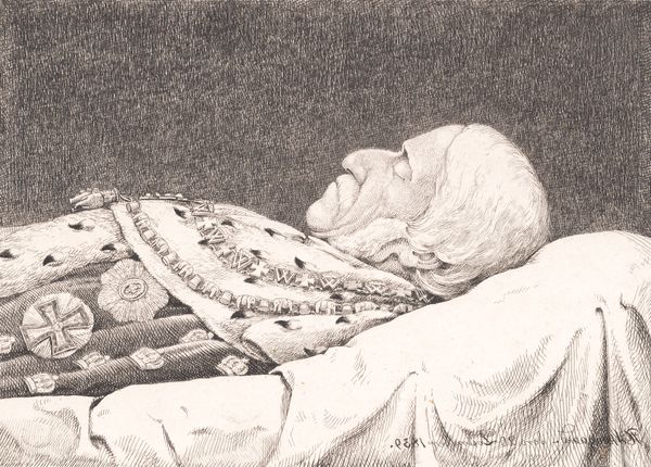 This photograph captures Victor Hugo on his deathbed. The anonymous photographer frames Hugo within an oval, set against a somber, dark background. The composition draws our eye to the stark contrast between Hugo's pale face and beard and the surrounding shadows, evoking a sense of solemnity. The image's structure reinforces the theme of finality and reflection. The oval shape, reminiscent of a cameo or locket, encases Hugo, presenting him as a cherished memory, an icon now frozen in time. This photographic choice isn't just aesthetic; it's a deliberate act of enshrining Hugo, transforming his death into a public, almost theatrical, event. In its formal constraints, this photograph transcends simple documentation. It engages with contemporary ideas about mortality, representation, and the cult of celebrity. The choice of monochrome strips away distractions, focusing our attention on the formal interplay of light and shadow, and inviting contemplation on the transient nature of life. The photograph doesn’t just record a moment; it constructs a narrative about fame, death, and remembrance.