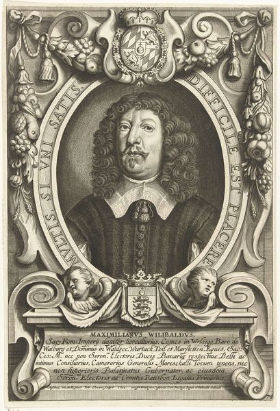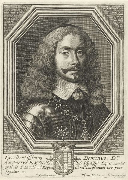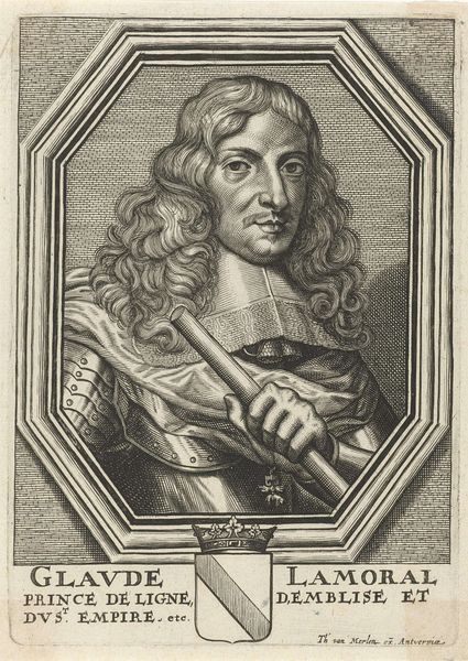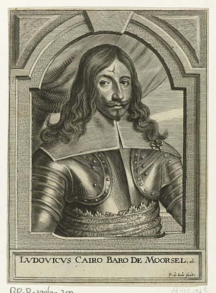 This print, depicting Louis de Bourbon, Count of Soissons, was made by Pieter de Jode the Younger, likely in the mid-17th century. It’s an engraving, meaning that the image was incised into a metal plate, probably copper, using a tool called a burin. The artist would have painstakingly cut lines into the plate’s surface, creating grooves that hold ink. This was then transferred to paper under high pressure, resulting in the image you see. Notice the fineness of the lines, particularly in the Count’s hair and the details of his armor. The textures and tones are built up through careful cross-hatching and stippling. Engraving was a highly skilled craft, demanding years of training and a steady hand. It was also a reproductive medium. Prints like these allowed portraits to be disseminated widely, solidifying the Count’s image and status. The medium itself, therefore, speaks to the social dynamics of power and representation in the early modern era. We shouldn't forget the intense labor involved in the production process; the many hours required to create this image.