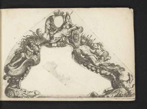 Giovanni Battista Bracelli created this etching, "From Bizzarie di varie Figure," in the 17th century. The printmaking process allows for a detailed depiction of these bizarre figures. Bracelli used etching, which involves coating a metal plate with wax, drawing through it to expose the metal, and then submerging the plate in acid. The acid bites into the exposed lines, creating grooves that hold ink. The plate is then pressed onto paper, transferring the image. Bracelli's technique emphasizes line and form, constructing figures out of geometric shapes and patterns. This lends a fantastical, almost mechanical quality to the figures, evoking a sense of artifice and design. The linear nature of etching allows for intricate details, highlighting the artifice of human form as a series of constructed shapes. The printmaking process itself facilitates the dissemination of these designs, turning artistic ideas into commodities for a growing market. This piece reflects a period where art and design increasingly intersected with commerce and broader social consumption.