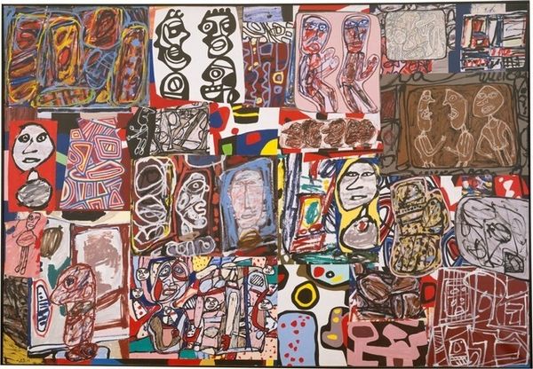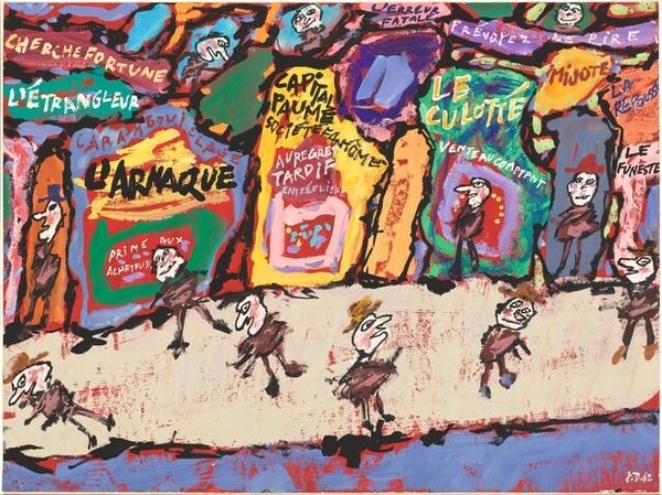 Jean Dubuffet made this oil on canvas, Rinçage, Graissage, sometime during his lifetime, and it's a wild ride of color and gesture. The crude, almost childlike figures and vehicles are rendered with a kind of joyful abandon that feels incredibly freeing. It reminds me that artmaking is as much about the process as it is about the final image. Look at the texture of the paint; it's thick, almost sculptural in places, with these raw, immediate marks that seem to capture the energy of the moment. The color palette, too, is fascinating – a mix of earthy tones and vibrant hues that clash and harmonize in unexpected ways. See that blue patch at the top? It's almost like a thought bubble, floating above the scene, adding a layer of depth and ambiguity. Dubuffet was a true original, and this piece is a great example of his unique vision. You might compare his work to that of the COBRA group, especially Asger Jorn, with its raw energy and rejection of academic conventions. It’s like Dubuffet is reminding us that art doesn't have to be perfect to be powerful.