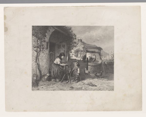 This photo, "Personen voor een huis," was made by an anonymous artist, probably sometime last century. It's a snapshot of a house, but what I love is how it captures a moment, a feeling, not just a place. The texture in this photograph is fantastic. It's not just about what's in the picture, but how it feels. The stones piled up in the foreground feel rough and uneven, like you could reach out and touch them. And then there's the way the light catches on the leaves, making them almost shimmer. It’s like the artist is saying, "Look closer, feel this." I’m reminded of Eugène Atget, who wandered around Paris with his camera, capturing the city in all its messy, beautiful detail. Like Atget, this anonymous artist isn't just documenting; they’re creating a mood, a memory, a whole world in a small frame. Art is like that, isn't it? A conversation across time, full of surprises and unexpected connections.