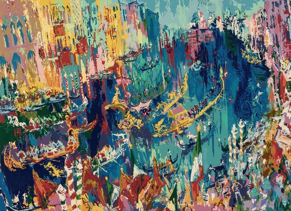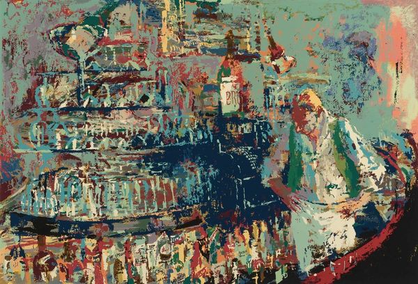 LeRoy Neiman’s “Left Bank Café” captures the vibrant social energy of post-war Paris in an animated scene created with bold colors. The Left Bank was, of course, the intellectual and artistic heart of the city. We see this in the visual codes of café society, a world of artists and writers in a moment of leisure. The column is plastered with advertisements and signs of cultural life, and behind it is the green awning of Le Palace Odeon, a known landmark. It is no accident that Neiman, who worked for popular magazines like Playboy, depicts the café as a colorful place for people to gather and see, and be seen. As historians, we can look into archives of images and written documents from the time, comparing the image to other depictions of Paris or artworks representing café society. This helps us to see the scene as more than just a rendering of a place. It reflects the role of art in shaping our understanding of cultural identity.