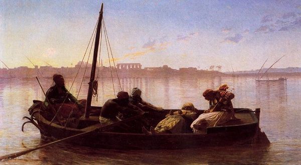 Curator: Giovanni Domenico Tiepolo’s painting, "The New World," created in 1797, offers a glimpse into 18th-century Venetian life, presented as a panorama of social observation. What’s your initial read on this one? Editor: My first thought goes to the performative nature of observation here. Everyone is looking—straining, almost—and that act of looking, and who gets to look, feels immediately central to the painting's meaning. It's almost like they are looking to an spectacle. Curator: Precisely. It's not just a candid snapshot. Tiepolo is making a comment on spectatorship itself. If we consider the period, the late Venetian Republic was dealing with immense social and political change, the promise of “new worlds” both exciting and disorienting for its citizens. This gathering, literally at the edge of the city near the lagoon, highlights the public's intense interest in these changes and discoveries. Editor: That disorientation makes sense, looking at this image from a contemporary lens, as if their collective gaze represents not just curiosity but also a degree of anxiety or longing. The class dynamics, visible in their varied clothing, feel important. It strikes me how certain groups have the power to 'see' more literally and figuratively, standing atop crates to gain vantage points. Who are the individuals in the front and in the back of the audience and why? Curator: Indeed. The man standing on the small pedestal pointing with what appears to be a stick draws the viewer’s eye. His elevated position implies knowledge, control even, but is it real or an illusion? Are the ones who look at him aware of his intentions or point of view? I believe Tiepolo challenges viewers to confront their own positions, urging the public to become not just watchers but participants in shaping the course of Venice as well as Europe. Editor: Thinking about that, I can't ignore the figures clustered at the painting's left; some of them are turned around to engage each other in dialogue or sharing what is happening. They serve a function that's distinct, like a little representation within representation. It feels like commentary. I see Tiepolo pushing beyond simple documentation toward critical reflection, as he prompts us to not just passively observe art but to actively question society, who's doing what, and, mostly, for what? Curator: It is almost an exercise in awareness. Ultimately, it becomes clear, viewing "The New World", that art does not hold the solutions to political or social disarray but allows one to see oneself in relation to progress, history, and, more so, other humans. Editor: I concur. There is no true way of "seeing the new world," the canvas expresses. The new world's meaning is fluid, co-constructed through dialogue and subject to shifting perspectives. What each witness actually extracts or contributes may never find consensus.