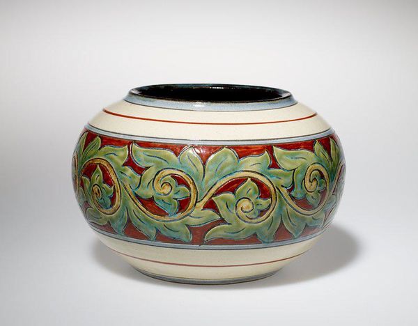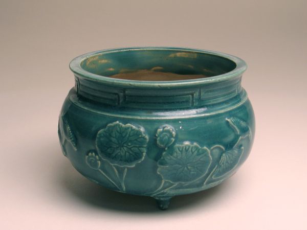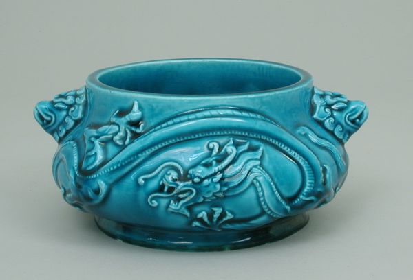 This bowl was made by the Chelsea Keramic Art Works, sometime between 1872 and 1889, using molded and glazed earthenware. The sinuous botanical forms pressed into the clay give it a lively surface, enhanced by that beautiful, subtly varied blue glaze. The bowl is interesting because it walks a fine line between industry and artistry. On one hand, the Chelsea Keramic Art Works was a commercial enterprise, producing ceramics for a growing consumer market. The use of molds speaks to this context; it's an efficient way to repeat a design. Yet, the level of detail and the attention given to the glaze suggest a higher ambition. The makers were clearly interested in aesthetics, and in aligning themselves with the broader art world. You can see this tension playing out in many ceramics of the period. It’s a reminder that the categories of art and craft are not always so clear. Ultimately, it's the close attention to both material and making that gives this bowl its enduring appeal.