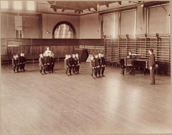 Editor: This photograph by William A. Webster, titled "Defectives, Feeble-minded," captures scenes from the Massachusetts School for the Feeble-Minded. The rows of children are stark and unsettling. What historical context should we consider when viewing this image? Curator: This photograph reflects early 20th-century attitudes towards disability and institutionalization. Consider the rise of eugenics and the belief in segregating individuals deemed "feeble-minded" to control reproduction and maintain a perceived societal norm. How do these power dynamics shape your understanding? Editor: It’s disturbing to think about how social policies influenced the lives and treatment of these children. It shifts my perception entirely. Curator: Exactly. It forces us to confront the ethical implications of social control and the power of institutions to define and marginalize individuals. It's a cautionary tale about the dangers of scientific and social biases. Editor: I see now that it is a poignant reminder of a dark chapter in history, one where science was misused to justify discrimination and segregation. Curator: Precisely. The image is not just a document; it's a historical artifact prompting critical reflection on societal values and their impact.