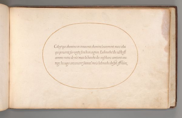 This anonymous calligraphic exercise in Latin presents us with a fascinating interplay of form and meaning. The script is meticulously inscribed within a precisely ruled frame, setting up a visual tension between the organic flow of the lettering and the rigid structure containing it. Notice how the varying thickness of the lines in each character creates rhythm and emphasis. The delicate flourishes and decorative elements in the ‘V’ at the beginning of the text, are contrasted with the unadorned uniformity of the subsequent letters, highlighting an initial moment of visual and conceptual significance. The structuralist in me sees a clear system of signs at work. The frame acts as a boundary, defining a contained space for the text, while the script itself operates as a code, conveying meaning through the arrangement of letters. The very act of writing becomes a performance, a physical and intellectual exercise that mirrors the philosophical nature of the text it conveys. This visual rhetoric invites us to contemplate the relationship between language, structure, and the pursuit of knowledge.