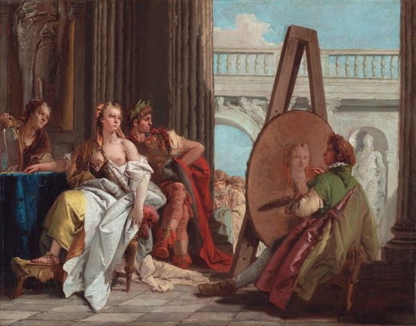 Editor: Caravaggio's "The Musicians," painted around 1597 using oil paints, showcases a gathering of young men making music. The textures in the painting—the sheen of the lute, the folds of the drapery—are so evocative. What catches your eye in terms of its materiality and production? Curator: Well, what intrigues me most is how Caravaggio collapses the distinction between idealized artistry and the gritty reality of its production. Notice how the figures aren't just playing music; they're consuming culture, actively shaping it. The musical scores aren’t simply props; they're commodities being actively interpreted and performed, bought and sold. What does it suggest to you that Caravaggio includes these specific material details? Editor: That music and art weren’t some divine inspiration, but the result of labor, like any other craft. The scores become almost like raw materials. It really shifts how we see artistic genius. Do you think this perspective changes how we view the artist's own labor? Curator: Absolutely. Caravaggio isn't just divinely inspired; he's a craftsman skillfully manipulating pigment, canvas, and the labor of his assistants to create a product for a market. It's not about transcendent beauty alone; it's about the system that produces that beauty. It also calls into question ideas about originality. How "original" can a composition be when even musical expression relies on reproducible materials and shared forms of notation? Editor: That’s a fascinating point – by showing the labor and the materiality so overtly, he demystifies the process of art making. Curator: Exactly. And in doing so, he compels us to consider art not as something precious and removed, but as part of a broader social and economic fabric. Editor: It's interesting how focusing on materials and labor brings new perspectives to well-known artworks. I hadn't considered that. Curator: Precisely! Materialist perspectives allow us to unearth the hidden systems that give artworks meaning and value.