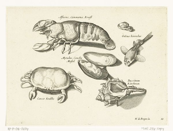 Editor: This print, "Waterslang, kikkers en padden," which translates to "Watersnake, frogs and toads" is attributed to an anonymous artist, sometime between 1581 and 1652. It's rendered in etching. The composition is stark, almost scientific in its arrangement. What do you see in this piece, beyond just a zoological study? Curator: Well, the surface level shows specimens arranged as in a textbook. But I think it's critical to consider the social function. Think of early scientific illustration—often underwritten by wealthy patrons invested in colonial expansion and resource extraction. This image participates in a worldview that seeks to categorize and therefore, in some ways, control the natural world. Editor: So, it's not just neutral observation? Curator: Exactly. Consider the context. This was a time of immense social upheaval, the rise of capitalism and global trade. The ability to name and classify becomes a form of power. What are your thoughts on that dynamic? Editor: I guess I never considered how something that appears objective could have its own political implications. But that categorization serves to reinforce human dominance over nature, and that itself has immense consequences we are dealing with today. Curator: Precisely! It encourages us to look at art, even seemingly benign depictions of nature, through a lens of social responsibility and historical awareness. How can we learn from images like these? Editor: By questioning the assumptions behind what we see and considering the power dynamics at play. Thank you so much! Curator: My pleasure. Looking at the artwork through various interdisciplinary perspectives encourages us to engage with these historical works through an empathetic lens.