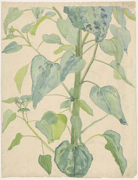 This is Paul Cézanne’s watercolor, "Geraniums". The interplay of light and shadow, rendered through fluid brushstrokes, immediately captures the eye. The geraniums, with their circular leaves, are not just depicted but constructed through patches of green. Cézanne was interested in the underlying structure of what he saw. Here, he uses watercolor to explore form and spatial relationships. The loose washes define shape and volume, as he builds form through color. The negative space around the leaves and the pots is as important as the subject itself, creating a dynamic tension that animates the scene. Notice how the composition extends beyond a simple representation of potted plants. Cézanne's approach disrupts traditional notions of perspective and fixed viewpoints. The act of seeing and representing becomes a process of deconstruction, of analyzing and rebuilding visual reality through color and form. This challenges us to question what we see and how we perceive it.