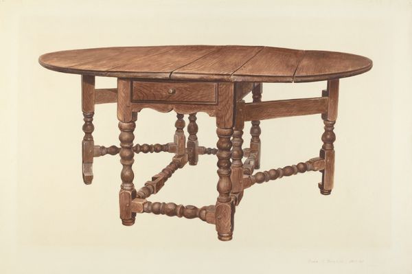 This drop-leaf table, crafted by Herter Brothers, showcases the dynamism of forms that transcends mere functionality. The table's legs, terminating in finely wrought scrolls, echo motifs found in ancient Ionic columns. Consider how this foundational architectural element, born in antiquity, appears here in the domestic sphere. Such appropriation speaks to a broader cultural impulse: the Renaissance artists looked to classical forms to elevate their creations; so too, here, classical motifs lend an air of refinement and timelessness to this piece. The table’s delicate ornamentation engages our senses. The smooth surfaces, the subtle curves and the intricate details evoke a sense of order, which, psychologically, provides comfort. Like the architectural structures that have stood the test of time, this table is poised—a touchstone connecting us to past aspirations of beauty. The table exists within a continuum, reflecting our persistent desire to shape our environment.