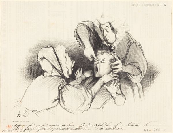 Honoré Daumier made this lithograph, titled "Vilain dormeur, va!" or "Ugly sleeper, go!", at some point in his career, which spanned much of the 19th century in France. This image presents a scene of domestic life, but it's not exactly harmonious. Daumier was known for his satirical and politically charged works, often critiquing the bourgeoisie and the social norms of his time, and his art frequently appeared in journals such as Le Charivari. Looking at the image, we see a woman sitting up in bed, looking less than pleased with her sleeping partner. The phrase underneath the image offers a clue to the social context, suggesting tensions within a bourgeois marriage. Daumier exaggerates the man's unattractive features and uses sharp lines to emphasize the woman's frustration. To understand Daumier's work fully, it helps to delve into the social history of 19th-century France, researching the dynamics of marriage and the economic realities that shaped relationships. Art historical resources, like period publications and scholarly articles, help us to contextualize this image. The meaning of art is always contingent on its social and institutional context.