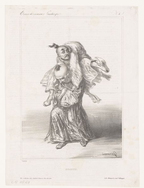 Curator: What an intriguing image. This is an engraving from 1657 attributed to Françoise Bouzonnet, entitled “Schenkkan in de vorm van een gebaarde man," which translates to “Pitcher in the Shape of a Bearded Man.” Editor: Well, it’s definitely peculiar. It’s odd to see a vessel personified with such detailed features, like the man’s somewhat imposing beard and decorative headdress. Curator: The engraving showcases the artistry and craftsmanship involved in decorative arts during the Baroque period, particularly concerning luxury goods accessible to affluent consumers. You have to imagine this particular imagery circulated widely to allow wealthy buyers insight into material design innovations. Editor: Interesting. I wonder about the image’s original function and context. Was this meant to inspire silversmiths, a catalog of design for the nobility, or perhaps just a display of artistic skill circulating through print culture? Curator: It probably played all three roles. Examining the lines, we see an expert command of the burin; look at the hatching used to render depth and the highlights. This was intended to inspire other makers. How else could you innovate your next design? Editor: And, perhaps, even make a cultural or political statement in so doing? Given that Bouzonnet was working during a time of evolving power structures and artistic patronage, I would wonder about who sponsored the imagery. To what extent does this image portray certain power relations in decorative art making? Curator: You raise a very valid point. The choice of representing the pitcher as a bearded man could speak volumes about cultural perceptions of masculinity, even status. It also speaks to the increasing consumption of commodities at this time as household needs are expressed through artistic innovation. Editor: Exactly. It encourages you to view something as utilitarian as a pitcher and think critically about consumption habits. That is not an act separated from culture or social class. Curator: It reminds us that even apparently "simple" printed images carry layered meanings and contribute to a culture’s historical record, which at the very least, keeps history alive for present viewers. Editor: Agreed. This print highlights the cultural narratives interwoven into seemingly mundane household objects. It really does ask the modern viewer to reassess what even comprises “historical source material."