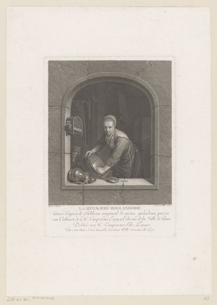 Curator: Here we have "Monk at the Organ" by Johannes Bosboom, a print made with etching, lithography, and drawing techniques in ink on paper, sometime between 1847 and 1891. It's a lovely example of his genre scenes, steeped in realism. What do you think? Editor: My first impression is quiet reverence. The monochrome palette emphasizes the contemplative mood. The framing—it feels almost like a vignette into another world, a private, sacred space. Curator: Bosboom was known for his church interiors. It wasn't just about architectural documentation. He explored the relationship between light, space, and the human figure. The organ, of course, is a powerful symbol here. Editor: Absolutely. The organ itself speaks to me of divine harmony and human skill intertwined, but the monk suggests something more human and heartfelt. Think about it: music as an offering, an almost tangible reaching for something beyond. The fact we have what is seemingly another monk praying on the side adds an interesting visual echo. Curator: It's as if we're invited into a moment of profound, personal connection with the divine. What I love about Bosboom is the subtlety, he wasn't didactic, just observant, curious, really. Editor: Observation feels like the core of it. A window into a particular devotion, and an invitation to consider what such devotion has represented across eras, whether medieval monasticism, or more modern forms of contemplation. We see a kind of symbolic continuity being honored in such an ordinary, human way, rendered by the skilled work. Curator: Exactly! He captures a sense of timelessness despite portraying everyday life. Something quietly extraordinary in the ordinary. It really gives pause for reflection. Editor: Absolutely. A fleeting glimpse, now immortalized, making you question, making you reflect.