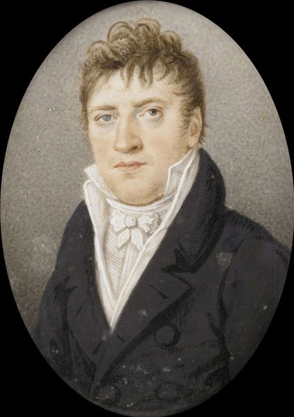 Charles Howard Hodges painted this portrait of a man, possibly J.W. Beynen, in oil on canvas. The composition is dominated by a muted palette of browns and creams. The texture of the paint gives a tangible presence to the sitter, whose gaze is directed away from the viewer, creating a sense of detachment and contemplation. The geometric interplay of shapes and lines within the portrait reveal deeper insights into its structure. The sitter’s clothing and the soft curves of his face contrast the backdrop's hazy, undefined space. The artist's use of light and shadow emphasizes the sitter’s three-dimensionality but also engages with Enlightenment ideas of rationality and objectivity. The portrait presents the individual as a subject of observation, inviting viewers to contemplate the sitter's inner thoughts and social position. Ultimately, this portrait functions as more than just a representation of an individual. It reflects the complexities of identity, perception, and representation within the artistic and intellectual landscape of its time.