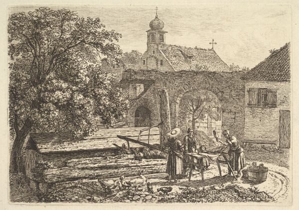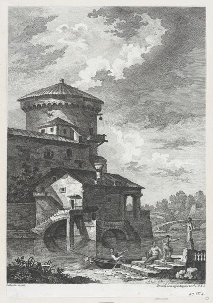 Giuseppe Barberis made this print of the side of the Church of San Colombano sometime in the late nineteenth or early twentieth century. It presents us with a historical record of the Italian church, its architecture, and its place in the surrounding mountainous landscape. As art historians, we can examine the visual codes embedded in this print to understand the cultural and social context in which it was created. The church, a central institution in Italian society, dominates the composition, emphasizing its power and influence. The style of the architecture and its solidity also convey a sense of stability and tradition, values that were often upheld by the church. Historical records, architectural surveys, and local histories would help us to understand the changes to the building and its cultural significance over time. By combining formal analysis with historical research, we can gain a deeper understanding of the social conditions that shaped both the creation and reception of this artwork.