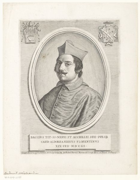 Giuseppe Maria Testana created this print of Alderano Cibo sometime between 1648 and 1679. The print captures Cibo's identity as a man of the church, but it also portrays him as a figure deeply embedded in the power structures of his time. As a cardinal, Cibo was not only a religious leader but also a political player, his influence extending into the social and cultural spheres of 17th-century society. Testana’s strategic use of line engraving reflects the status and authority associated with Cibo’s position. The meticulous detail in his garments and the subtle rendering of his facial features suggest not just a likeness, but an idealized representation of power and virtue. The print invites us to consider the complex relationship between religious authority, personal identity, and artistic representation in a historical moment marked by religious and political upheaval. It reminds us that portraits are never neutral; they reflect the societal values and the artist’s interpretation of the subject’s role within them.