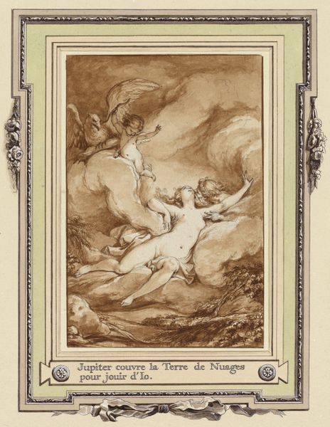 Editor: Here we have "Fiskaren och anden" or "The Fisherman and the Spirit" by Gösta Adrian-Nilsson, created using watercolor. It evokes such a dreamy, ethereal quality. What do you see in this piece, Professor? Curator: What strikes me is the intersection of intimate portraiture and the symbolic landscape, pushing against the traditional boundaries of genre. Considering Adrian-Nilsson's identity as a queer artist in a time of intense social pressure, how might we interpret this 'spirit' not just as a mystical figure, but also as an embodiment of suppressed desires or a longing for connection beyond societal constraints? Editor: That's a really interesting point! It adds another layer to the way I perceive the subjects, perhaps emphasizing their isolation or inner worlds. What about the choice of watercolor? Curator: The fluidity of watercolor lends itself beautifully to exploring themes of liminality and transformation, particularly in relation to gender and identity. The blurring of forms and the merging of the fisherman and the spirit can be viewed as a deliberate subversion of fixed categories, challenging the heteronormative gaze. Think of how contemporary gender theory embraces fluidity, challenging rigid categorizations of male and female. Could Adrian-Nilsson be prefiguring some of those ideas? Editor: It feels like the artist uses this dream-like state as a space where societal constraints disappear, doesn't it? Curator: Precisely! And note the ornamental, almost theatrical framing. How does that shape our understanding of the "performance" of identity within this constructed space? Editor: This has completely shifted my perspective. I initially saw it as a simple scene, but now it feels like a powerful commentary on identity and societal expectations. Curator: It's a reminder that art, particularly from marginalized voices, offers invaluable insight into the complexities of navigating a world that often seeks to confine us. These historical explorations help us understand our contemporary cultural landscape.