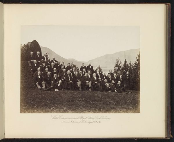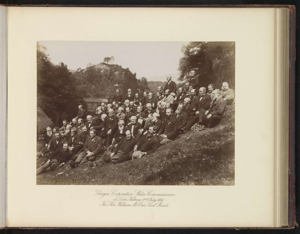 Editor: Here we have "Glasgow Corporation Water Commissioners at Gorbals Works 5th Sept. 1883. The Hon. John Ure, Lord Provost," a gelatin-silver print photograph taken around that time by T. & R. Annan & Sons. It's a large group portrait, and I'm struck by how posed and formal it feels, but also a bit unsettling in its uniformity. What jumps out at you about it? Curator: This image is deeply rooted in the socio-political landscape of late 19th-century Glasgow. Think about the context: The Corporation Water Commissioners were crucial figures, responsible for public health and sanitation at a time of rapid industrial growth and urbanization. The photograph isn't just a record; it's a performance of power, isn't it? Consider the very act of gathering these men, the Lord Provost among them, for a formal portrait at the Gorbals Works. Editor: A performance of power, that's interesting. So, you're saying the photo itself is making a statement? Curator: Absolutely. How do you think the location plays a role in conveying this power dynamic? What does it say about their relationship with the environment and the people they serve? Editor: Well, the setting isn’t particularly glamorous, more functional. I guess it reinforces the idea that they’re serious, practical men focused on the city’s infrastructure rather than aesthetics. It looks less about individual achievement and more about a unified civic body. Curator: Precisely. The image projects an aura of civic duty and collective responsibility, valuable in a period of substantial social change. The commissioners are predominantly male, highlighting the gendered nature of governance during that time. Notice, too, how these photographs, though intended for public consumption, also found their place in institutional archives, shaping historical memory. Editor: That's a really insightful take. It goes way beyond just a picture of important people, becoming a statement about social order and governance. I hadn’t considered that. Curator: Indeed. Art provides a rich record of the past, reflecting not only its aesthetic values but its social and political ones too. It is about looking closer at who is represented, what power they yield, and how the setting can enhance such themes. Editor: I’ll definitely keep that in mind. Thanks for shedding light on that!