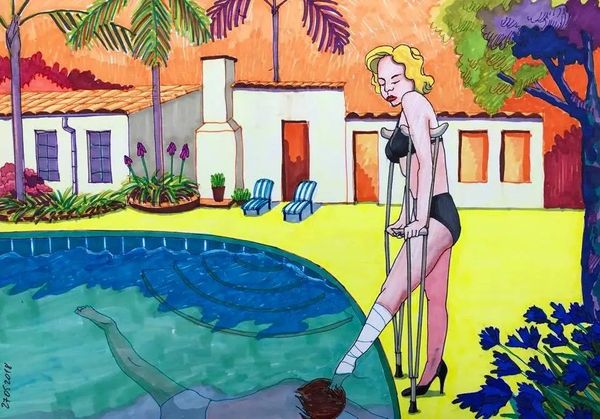 Mel Ramos made this painting, Wild Girl, using oil on canvas. What strikes me first is the almost cartoon-like quality. The flatness of the color blocks, the solid black outline of the figure. It's so clearly a painting, revelling in the artifice of the thing. Look at how Ramos plays with texture. The woman’s skin is smooth, almost porcelain, in contrast with the lush, painterly jungle surrounding her. I’m really drawn to the way the foliage is rendered with these quick, expressive strokes of paint. It's like Ramos is saying, "Yeah, I know this isn't real. But isn't it fun?" It’s a painting about painting, a nod to the history of pin-up art, and maybe even a wink at Henri Rousseau's jungle scenes. All in one go!