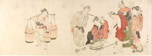 This woodblock print, Act Six: Yoichibei's House from the play Chushingura, was created by Katsukawa Shun'ei. Shun'ei was one of the leading ukiyo-e artists of late 18th-century Japan, specializing in images of Kabuki actors. Here, Shun'ei depicts a scene from the famous Chushingura story, a tale of loyalty and revenge. The play, set in the early 1700s, captures an important shift in Japan's social structure under the Tokugawa Shogunate. The samurai class, bound by codes of honor, were gradually being sidelined, as merchants gained prominence in Japan's burgeoning urban centers. Shun'ei worked at a time when the traditional arts and social hierarchies were being questioned. Woodblock prints, widely circulated, became a medium through which artists like Shun'ei could both celebrate tradition and reflect on the changing times. The story of the 47 Ronin resonated deeply in Japanese society, raising questions about duty, sacrifice, and the cost of loyalty. Art historians can look to popular culture and theater history to understand the full impact of this image. By understanding the social and institutional context, we see this print as more than just an illustration; it becomes a window into a pivotal moment in Japanese history.