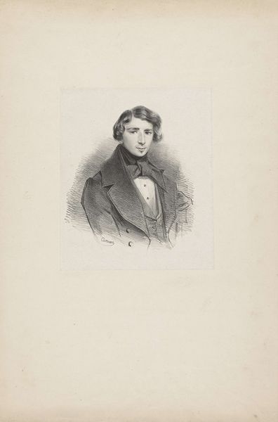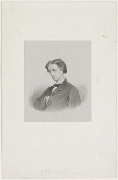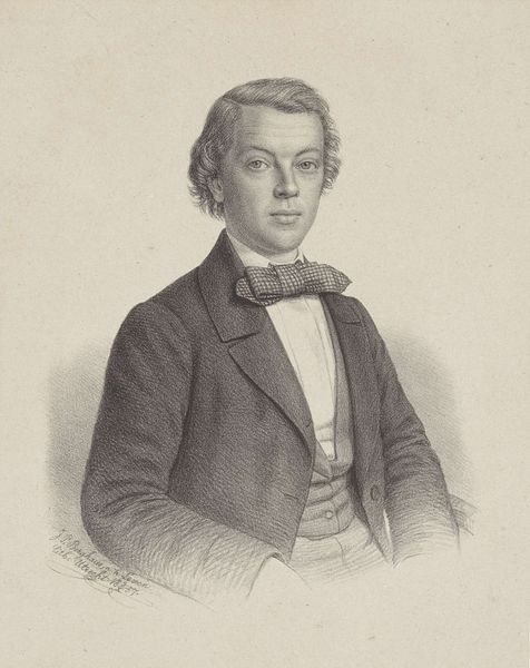 This lithograph of J. Kar. Hummel was created in 1845 by Johann Peter Berghaus. Lithography, as a medium, democratized image production, allowing for broader circulation of portraits, which had previously been the domain of the wealthy. Berghaus captures Hummel with a gaze that feels both direct and somewhat melancholic. The detailed rendering of his clothing – the patterned waistcoat and carefully knotted scarf – speaks to the sitter's status and attention to personal presentation. Yet, it is the subtle expression that hints at the complexities beneath the surface. During this period, representations of men often navigated between ideals of romantic sensitivity and bourgeois respectability. How does Berghaus manage to capture both? Perhaps it is in the quiet dignity of the pose, or in the way the soft light models the subject's face, inviting a sense of intimacy and reflection. This portrait then, is not just a likeness, but a carefully constructed image reflecting the sitter’s identity.