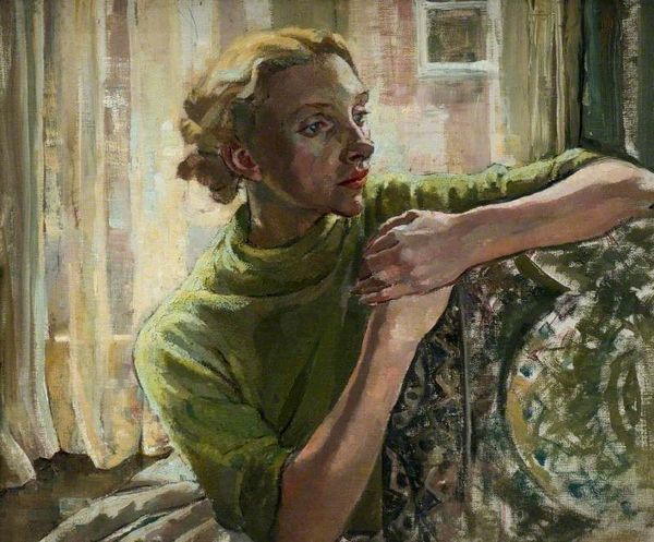 Curator: So, we are looking at "Winter Sunshine" painted in 1935 by Ethel Léontine Gabain, using oil paints. Editor: It strikes me as a painting filled with a sort of melancholic quietude, bathed in that beautiful, soft light we only get during the colder months. Curator: The light certainly is masterfully handled, diffusing gently across the subject's face and clothing, accentuating the overall softness. Notice how the light shapes the woman’s face, the curves and shadow. This light really does embody winter's subtle brightness. Editor: It’s like the sun is trying to coax warmth out of a cold scene, and she seems almost hesitant to fully embrace it. There is almost some internal dialogue or reluctance to it. Curator: Structurally, I find it fascinating how Gabain uses the delicate lace veil to frame the figure. It creates a kind of semi-transparent boundary, blurring the lines between interiority and exteriority, between the personal and the observational. Editor: Oh, interesting, almost like she's observing the light, or allowing us to. That semi-transparent lace also creates an ethereal, almost dream-like quality, doesn't it? The use of textures—the lace, the fabric, even the visible brushstrokes—really adds to that sense of intimacy. She looks like an introspective vision in waiting. Curator: Indeed. It seems the brushwork and the texture of the painting play a very deliberate role. Gabain does not aim for photorealistic smoothness but embraces the materiality of paint to evoke texture and atmosphere. In some respects, there is more intention behind each brush stroke than in some of the more polished Realist pieces. Editor: Absolutely. It's a rather fascinating dialogue between realism and something dreamier, a feeling rather than a literal depiction. It definitely speaks to that liminal space between thought and reality, doesn't it? And I’d have to admit it creates an undeniable charm. Curator: Ultimately, Gabain's "Winter Sunshine" is so effective as a masterful rendering of both light and introspection, a reminder perhaps of the quiet beauty of the introspective spaces the winter months allow. Editor: And a subtle encouragement to open ourselves to the sunshine within.