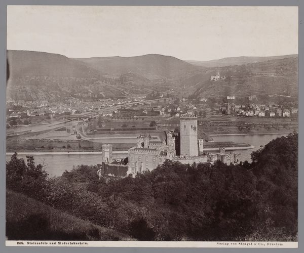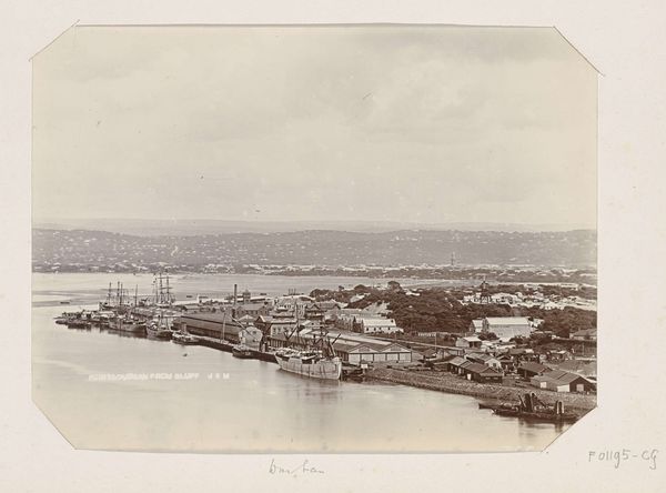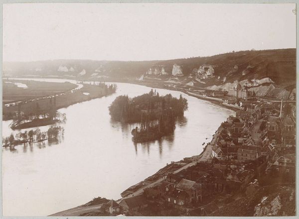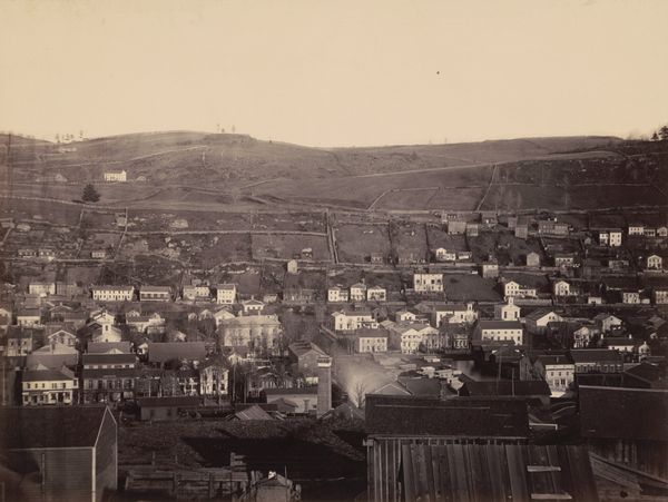 William H. Rau created this photograph with albumen print, mounted on paperboard, and the sepia tones provide a sense of distance and nostalgia. The composition is dominated by a high-angle perspective, offering a comprehensive view of a landscape bisected by a river and a prominent bridge. The scene is structured into distinct horizontal layers: the river and bridge in the foreground, followed by a settlement and fields, and finally, the distant hills under an expansive sky. Rau masterfully uses depth and scale to compress the scene, creating a flattened effect that emphasizes the photograph's surface. The bridge acts as a strong directional element, leading the eye into the composition. The photograph captures a moment in the industrial transformation of the American landscape. Rau’s choice of perspective challenges traditional landscape painting conventions. Ultimately, this image functions as a cultural artifact, inviting us to reflect on the ways we perceive and represent our world through the lens of technology and artistic expression.