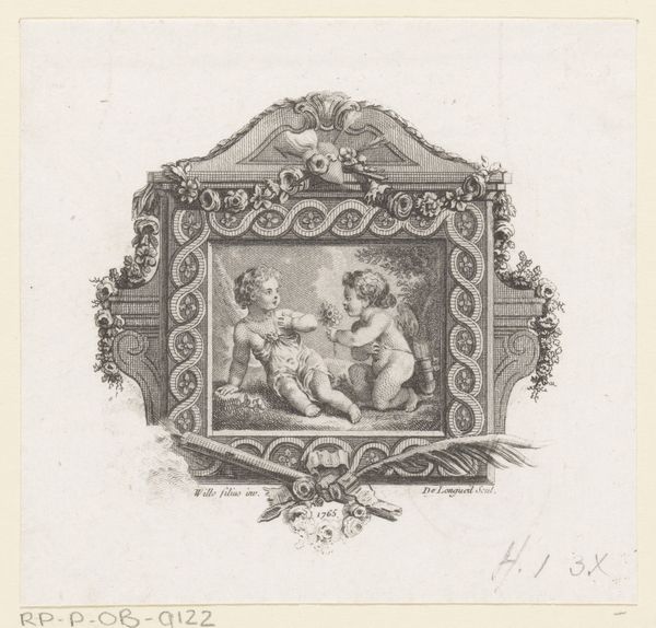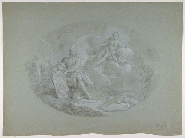 Jean-Honoré Fragonard made this print, "Le Pot au Lait," in France, sometime in the late 18th century. It's a delicate engraving, rendered in a style that encapsulates the Rococo, with its playful and ornamental qualities. The image illustrates one of La Fontaine’s fables, telling the story of a milkmaid whose daydreams of upward mobility are shattered when she trips and spills her milk. Fragonard, however, avoids moralizing. Instead, the woman's dreams literally rise from the spilled milk as fantastical visions of what might have been. The print offers a subtle commentary on the social ambitions prevalent in pre-revolutionary France. To truly grasp the print’s nuances, it's important to look at the wider context: the culture of printmaking in France, the popularity of La Fontaine’s fables, and the social aspirations of the emerging middle class. Researching these aspects can reveal how Fragonard, through this seemingly simple image, engaged with the social currents of his time.