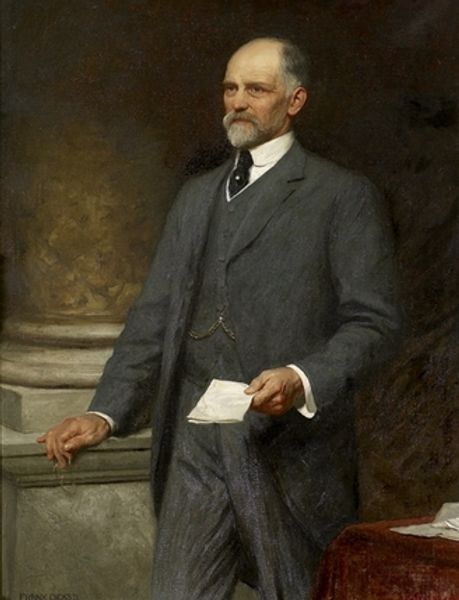Editor: This is John Singer Sargent's 1902 portrait of Peter A.B. Widener, rendered in oil paint. It's quite a stately depiction. What immediately strikes me is how dark and imposing it feels. How do you interpret this work? Curator: Let's consider the materiality of this painting. Oil paint allowed for such richness and depth of color, contributing to that imposing feeling. But the very act of commissioning such a portrait also reveals something of Widener's social aspirations. This wasn't simply about capturing a likeness; it was a deliberate construction of identity through material means. Editor: I see what you mean. It's not just a record, but almost a performance of wealth. Curator: Exactly! Think about the labor involved: Sargent's skill, the production of the pigments, even the tailoring of Widener's suit. Each element represents a network of material production and consumption tied to the subject's position in society. The materiality speaks volumes. Editor: That's a perspective I hadn't considered before. I was so focused on the visual aspect, but breaking it down to the materials and processes...it changes everything. Curator: It forces us to question the relationship between the artwork and the socio-economic context that enabled its creation. Editor: So, beyond the man in the painting, we are actually looking at a complex interplay of labor, material and consumption of the time? Curator: Precisely. The art becomes a tangible record of production. Editor: I appreciate how your materialist approach brings into focus elements easily overlooked in traditional analysis. Thank you! Curator: My pleasure. I’m glad I offered another viewpoint into how to see.