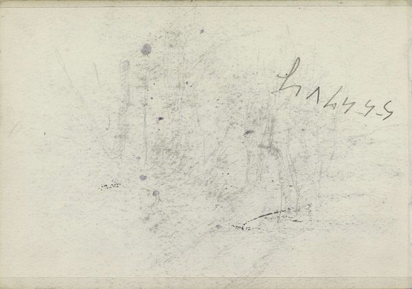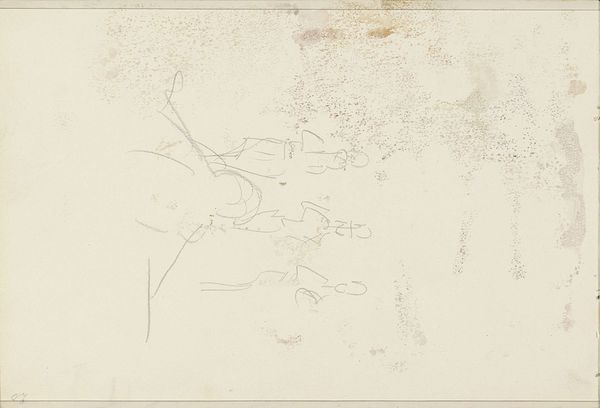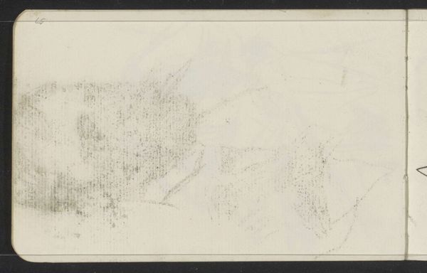 Willem Koekkoek made this delicate drawing, *Bladerdek*, using graphite on paper. The composition appears sparse and fragmented, focusing on capturing the bare essence of form. On the left, linear scaffolding rises from the ground with sharp, angular lines, while on the right, organic shapes suggest foliage, trees, or perhaps dense shrubbery. The minimal use of shading emphasizes outlines, giving a sense of depth through the contrast between the solidity of the scaffolding and the ephemeral nature of the trees. This study in contrasts is structurally intriguing. Koekkoek juxtaposes geometric precision with the irregularity of nature, a dialogue between human construction and the natural world. The unfinished quality of the work invites us to ponder on the nature of representation itself. It is less about detailed depiction, and more about the interplay between line, form, and spatial suggestion. This tension between the constructed and the organic invites further contemplation of what we perceive as real.