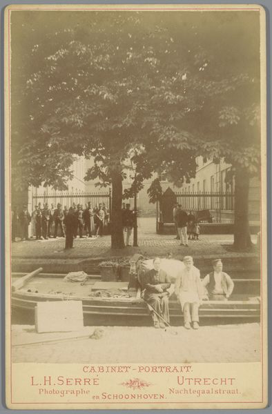 Editor: This gelatin silver print, "Wandelende mensen op straat" – Walking People on the Street – was taken by Hendrik Herman van den Berg before 1894. There’s almost a ghostly feel to it, these figures captured mid-stride with soft, muted tones. What symbols do you see at play here, or how does it resonate with its time? Curator: It's interesting you use the word 'ghostly'. Gelatin silver prints, particularly early ones like this, often evoke that feeling. Consider the long exposures required; each figure isn’t merely standing, they are held there. And those darker clothes, obscuring any distinctive lines of the body. Editor: Yes, I also feel the anonymity that comes with that obscuring, as if this is less about particular individuals and more about representing a broader group, the city-dwellers. What are your thoughts? Curator: Precisely. This visual language speaks to broader ideas, especially considering this was created before the mass democratisation of cameras: who is included, and who is left outside? Look at their postures; what does their procession communicate to you? Editor: They appear quite somber, walking with purpose but not exactly joyful purpose. Perhaps hinting at the social conditions of the time? Curator: It’s important to also note how light and shadow delineate both presence and absence, particularly as technologies evolved, like photography, promising truth while shaping the lens and what we look at. How do we decide what is visible? It raises powerful questions about what history remembers and chooses to reveal. Editor: That's given me a whole new perspective. Seeing it as a social commentary expressed through shadow and posture changes my interpretation entirely. Curator: Indeed. Visual symbols, like light, have cultural and psychological resonance. We can engage more deeply with both the photographic and sociological intention.