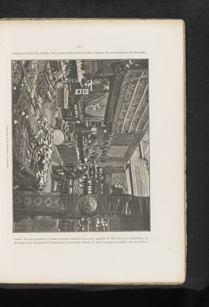 Curator: Look at this incredible print, created before 1885, it depicts a view of George Hodgson's mechanical devices displayed at the 1885 World Exhibition in Antwerp. The method used was engraving, creating a real realist flavor to this piece of machinery and its exhibition setting. Editor: It's quite the captivating chaos of gears and cogs, isn't it? A mechanical ballet frozen in time. Gives me a bit of a steampunk vibe, even before steampunk was really a thing. How did they even begin to assemble so many components together? Curator: What I see here, beyond just a picture, is the dawn of automation as seen by those who are in the middle of the Industrial Revolution, I wonder what their sense of impending modernity would feel like. Editor: I think that sense of 'impending modernity' that you identify has clear labor implications, which leads us directly to how it might be made... The materials for the print are obvious—metal plate, ink, paper—but imagine the skilled labor and craftsmanship that were involved to realize the printing. Curator: You make me consider that with all those complex moving pieces and with their manufacture for commerce we arrive to our future; is that future good or is it bad? Editor: It's both, and neither, perhaps? More jobs were made with these gears to then eventually displace someone else. The material progress is intertwined with that tension. And to what extent should we, looking back, glorify this material complexity? The social and human cost needs also remembering, Curator: True; the engraving’s crisp lines render not just the machines, but also a story of societal and labor transformation, even a question; if machines get built from hands, what does that make the purpose of those same hands in a future world? What can they make then? Editor: Well, I'm struck by how an image ostensibly about machines actually raises so many interesting questions about human creation, and our role in the cycle of production, use and consumption... It is worth keeping in mind today. Curator: Yes! What this teaches me is that even with our progress and what we bring with our new visions, what truly stays behind as remarkable and awe-inspiring are the same fundamental feelings and issues from the core.