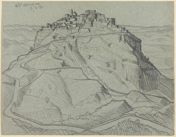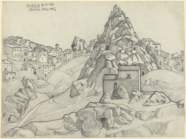 Curator: Here we have M.C. Escher's "Atrani, Coast of Amalfi," a pencil and ink drawing from 1931. It captures the Italian coastal town nestled between dramatic cliffs. What are your first impressions? Editor: Well, right away, it feels almost… claustrophobic, but in a strangely comforting way? All those tightly packed buildings seem to cling to the rock face. It’s like a cubist ant colony suspended in time, captured with just a handful of pencils! Curator: That's an interesting take. Indeed, it marks an important shift in Escher's work. This drawing was created during his travels through Italy. The Amalfi Coast, with its vertiginous landscapes, deeply impacted him, sparking his exploration of perspective and spatial relationships that define his later, more famous, works. It highlights a critical phase where documentation becomes experiment. Editor: I can see that. There's a restless energy in the lines. They're not just depicting what's there; they're searching, almost nervously, for the right angle. I'm getting this sketchbook vibe... Do you know if Escher usually worked this way, almost live drawing, right into the sketch? Curator: Exactly, it appears as one of Escher’s ‘plein air’ pieces, sketched directly in front of the subject. You get a sense of immediacy in this sketch, compared to, say, when the printing process allows a lot more measured interventions. Editor: And he does all of this with the bare minimum, barely any heavy textures and details here, leaving so much to our imagination as a viewer. Do you think Atrani being relatively free from the booming tourism of later decades has impacted Escher capturing an untouched coastline at that time? Curator: In all likelihood, yes, but also consider how places, through their very representations, come to be inscribed in our historical consciousness and collective imaginations. And works like these arguably contributed significantly to how Atrani, and by extension, the Amalfi Coast, are perceived as an idyllic retreat in our culture. Editor: It definitely puts the 'escape' into 'landscape.' I think there's such charm and mystery in the way Escher reduced everything to essential lines. Now that you have mentioned tourism I am sure visiting Atrani will never quite equal capturing that precise, Escher’s unique, angle. Thank you for walking me through a different way of looking at this work! Curator: My pleasure. I hope our listeners also enjoyed the insight into this particular work of art.