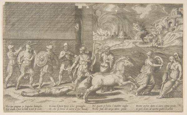 This design for a triumphal chariot of virtues was etched by an anonymous artist. Its allegorical figures and classical references speak to its historical context. Likely created in Italy, sometime in the 16th or 17th century, the print provides an intriguing glimpse into the visual culture of courtly spectacle, exploring how power was represented and reinforced through public display. The elaborate chariot, adorned with allegorical figures representing virtues, would have been part of a parade or festival. The social elite would watch such a spectacle. This would re-inscribe the hierarchies of power, with the virtues seemingly embodied by the ruling class. The figures who pull the chariot are dressed as soldiers, suggesting that the virtues are upheld by force. To better understand the print, we would want to learn more about the specific events for which such chariots were designed, and about the iconography of virtue in the period. Such historical research can help us understand how art and social life were intertwined in the past.