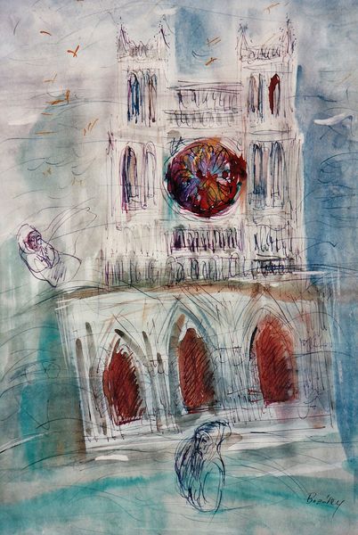 Maria Bozoky made 'Visitor in Prague' with watercolors and ink, creating a visual diary of her travels. Look at how Bozoky builds the city with layers of transparent washes. See the way the buildings almost float, their forms dissolving into the misty atmosphere. The paint is applied thinly, allowing the paper to breathe through, creating a sense of lightness. But then there are those assertive ink lines, scratching across the surface, mapping out the architecture with a nervous energy. I keep coming back to the steeple on the right of the canvas, it's been built up from layers of brown, red, and white. It’s a simple shape, yet it anchors the whole composition, like a small exclamation mark in a dream. Bozoky's approach reminds me a little of Raoul Dufy, another artist who captured the vibrancy of urban life with quick, gestural marks. But where Dufy’s paintings are bright and sunny, Bozoky’s work feels more introspective, almost melancholic. Art isn’t about answers, it’s about questions, about embracing the unknown.