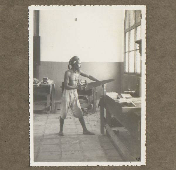Curator: This photograph by Woodhead Studio, titled "Defectives, Epileptics: United States. Massachusetts. Palmer. State Hospital for Epileptics: Shower bath," is a stark image. The dimensions are roughly 21 by 16 centimeters. Editor: It's chilling. The clinical setting, the bare figure under that harsh shower, it feels incredibly dehumanizing. Curator: These types of images were common in institutions of the time, used for documentation, classification, and, problematically, for eugenic studies. They were tools of power. Editor: Exactly. The gaze is so clinical, objectifying. You can feel the power dynamics at play, reducing this individual to a specimen. The very title reinforces that. Curator: Understanding the socio-political context is key. These images reflect anxieties about social order and the desire to control populations deemed "undesirable." Editor: Absolutely. It's a potent reminder of how photography can be used to perpetuate harmful ideologies and strip individuals of their dignity. Curator: It forces us to confront a dark chapter in history and the ways in which institutions can dehumanize and marginalize vulnerable populations. Editor: An important, albeit disturbing, piece for sparking crucial dialogue about representation, power, and the lasting impacts of institutionalization.