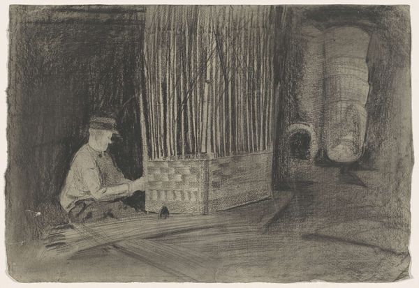Carel Adolph Lion Cachet made this drawing, Mandenmaker, with chalk. It's all about process isn't it, the soft yielding line of the chalk, the artist feeling his way through the image, almost like touch. The texture here is really interesting; that soft chalkiness gives everything this dreamy, smudgy quality. See how the vertical lines of the screen behind the figure contrast with the dark mass in the upper right corner? It's like a push and pull, a visual dance that keeps your eye moving. There's a real physicality to how the chalk sits on the page, like you could almost brush it away with your hand, but I wouldn't try it! The way these lines merge and diverge create a real sense of depth and atmosphere, like looking through a veil. Cachet's work reminds me a bit of Whistler, that same interest in atmosphere and suggestion, that willingness to let the image emerge rather than dictate it. Art is about embracing the unknown, the unfinished, the ambiguous, and this drawing does that beautifully.