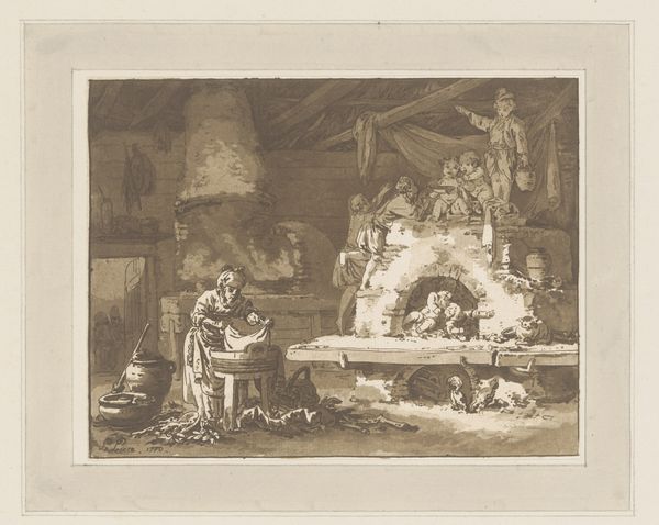 Here we see Karl Vaditz’s monochromatic etching, “Men around a table in a cellar.” The tight, claustrophobic composition immediately draws the viewer into the dimly lit space. Note how the linear elements of the cellar's architecture and the men’s clothing create a dense network of lines, enhancing the feeling of confinement. The artist uses light and shadow to emphasize the texture of the rough, aged surfaces. Vaditz's deliberate use of chiaroscuro, the contrast between light and dark, functions here to create an air of mystery, a common theme in late 19th century art and literature. The setting, in combination with the figures, invites us to consider the relationship between the material and the spiritual, the known and unknown. The focus on form and texture over explicit narrative, characteristic of Vaditz's style, invites an open interpretation. The interplay between light and shadow offers a sense of depth, leaving the viewer to contemplate the artwork’s multiple layers of meaning.