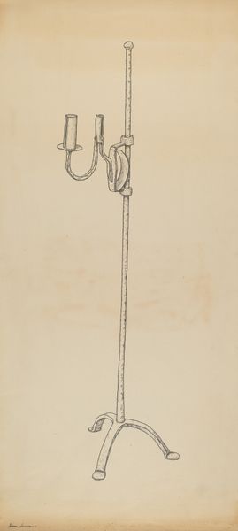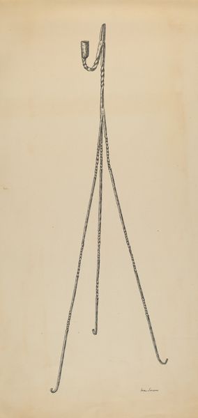 Curator: Before us we have Irene Lawson's drawing, "Toast Rack," created around 1939, rendered in a clean, precise line drawing style. What are your initial impressions? Editor: Spare. It's… almost painfully minimalist. I get a feeling of deprivation from the utensil itself and even the artistic execution. The emptiness around the subject feels charged. Curator: Indeed. Let’s consider the object itself first. Its spartan form mirrors a very functional, unadorned modernist aesthetic, favoring pure utility and the inherent geometric shapes. Editor: Right, but beyond its apparent utilitarianism, the "Toast Rack" embodies a quiet sort of domestic ritual. Toast, of course, is humble food, but there is such an intentional effort to uniformly separate them. Curator: The modernist pursuit, yes. We can consider how the arrangement creates a play of positive and negative space that generates rhythm with its consistent vertical forms anchored to a horizontal support. This brings forth formal relationships between the linear structures and blank background that engage the viewer on its formal terms, like much constructivist artwork does. Editor: And the symbolism? Mid-century, perhaps anxieties related to a post-war economy... each slot could even read as individual family members within an unstable structure or anxieties towards economic pressures. The delicate linearity further enhances a sense of fragility and order against threat of breakdown. The toast itself, like food rationing! Curator: That's a poignant reading. Speaking structurally, observe how the convergence of lines, the delicate balancing act of representation – this interplay highlights the fragility and precision inherent in the artwork's very existence. Editor: True. A stark representation of everyday rituals carrying undercurrents of uncertainty and order. Thank you for pointing out those delicate balances in both art and potential historical themes. Curator: And thank you, it is often difficult to see how structural choices directly parallel human anxieties. What seems sterile initially, can offer complex themes through exploration.