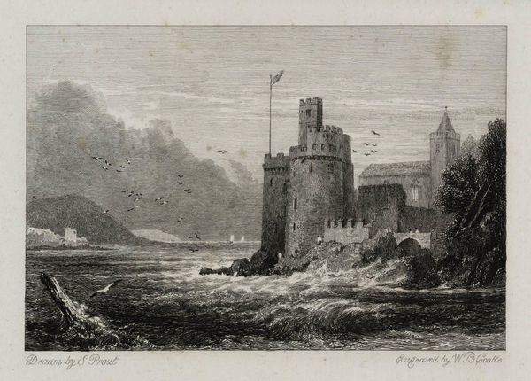 Editor: David Cox’s “Caernarvon Castle” presents a somber scene. The monochrome palette makes the castle seem like a relic. What symbols or deeper meanings do you find in this work? Curator: The castle itself is a loaded symbol. Historically, it represents power, control, and English dominance over Wales. Cox, however, presents it softened by time, almost melancholic. Do you notice how the figures in the foreground contrast this imposing structure? Editor: Yes, they seem small and almost insignificant in comparison. The daily lives of the locals seem to be juxtaposed with the imposing castle. Curator: Precisely. The enduring power of place, and the way human life adapts around it, is a central theme. It is a powerful reminder of time's relentless march, and the blending of historical weight with everyday existence. Editor: I see it now; the past coexisting with the present, each influencing the other. Thank you!
