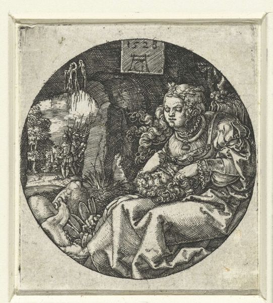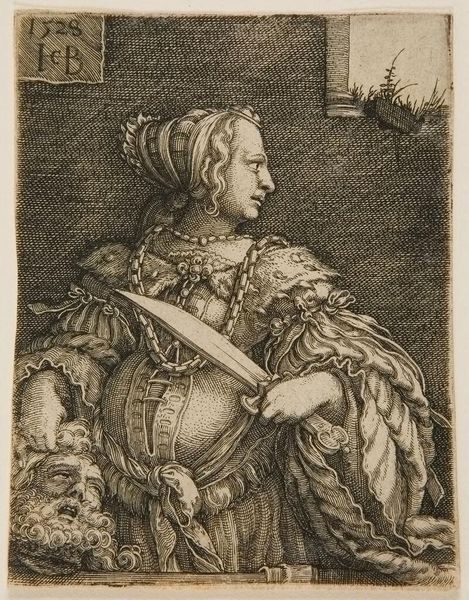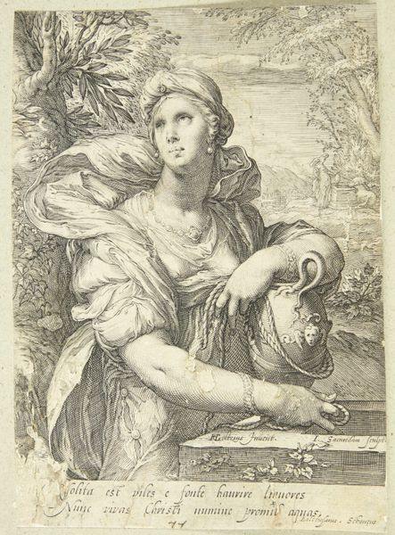 Jacob Matham etched this profile of a woman in a fantasy costume in the late 16th or early 17th century. Her elaborate turban is adorned with jewels, signifying wealth and status, reminiscent of exoticized depictions of figures from the East. This headdress evokes ancient diadems worn by Hellenistic rulers, but also reappears in Renaissance portraits as symbols of nobility. This motif of elaborate headwear transcends cultures and epochs, embodying a deep-seated human desire for distinction and reverence. The gesture of her open hand, reaching forward, can be traced back to classical antiquity, appearing in images of orators and leaders, and later, religious figures, bestowing blessings. Such gestures tap into our collective memory, triggering subconscious associations with authority. Consider how these symbols evolve across history, from emperors to saints, adapting to reflect different values and beliefs. The cyclical progression of this symbol demonstrates how it resurfaces, evolving and taking on new meanings in different historical contexts.