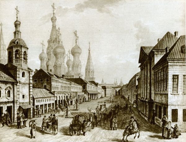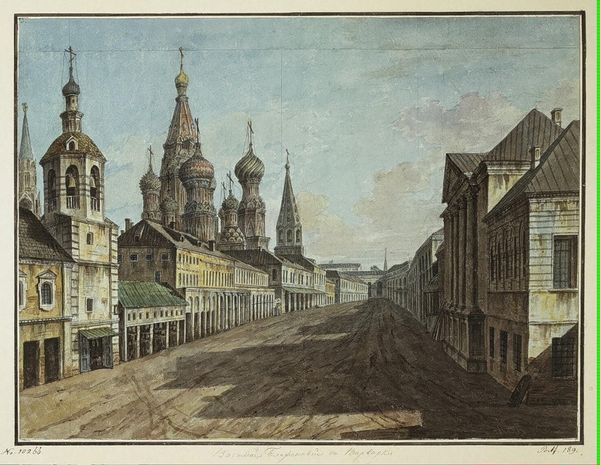 Fyodor Alekseyev's "View of Vladimirskiye (Nikolskiye) Gate of Kitai gorod" captures a moment in Moscow's urban development. Painted in the late 18th or early 19th century, the watercolor offers insight into Russia's evolving relationship with the West. Alekseyev, known for his cityscapes, presents us with a view of Moscow that blends traditional architecture with emerging European influences. The Kitai-gorod wall, a relic of medieval fortifications, coexists with the neoclassical building on the right, reflecting the ongoing westernization of the Russian elite. The painting thus captures a society in transition, navigating its cultural identity amidst political and economic change. To truly understand this work, a historian would consider factors such as Catherine the Great's reforms, the rise of a merchant class, and the evolving role of the Orthodox Church. By engaging with these social and institutional contexts, we can appreciate Alekseyev's work as more than just a pretty picture; it's a window into a pivotal era in Russian history.