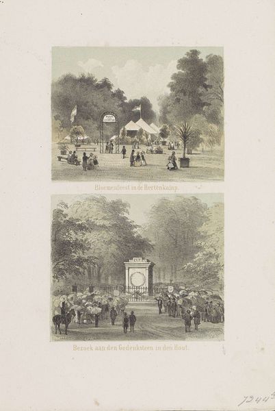 Curator: Let's discuss this engraving, dating from between 1848 and 1927, which captures the statue of Willem I, Prince of Orange, in the Plein at The Hague. The print is attributed to Wilhelmus Cornelis Chimaer van Oudendorp and seems rooted in the neoclassical style. What are your first thoughts? Editor: The monumentality is striking, but there is also an unexpectedly peaceful, even casual air about it, wouldn't you agree? People milling about, children playing. It seems the artist wished to capture how power is embedded within the day-to-day activities of the citizens. Curator: Indeed. Focusing on the historical and social dimensions, one has to recognize how such monuments served—and continue to serve—as focal points for shaping collective identity. This statue functions, I believe, as a deliberate attempt at nation-building. Consider the symbolism; a leader immortalized and made perpetually present, reinforcing his legacy for generations. Editor: The very deliberate pose of Willem is essential for grasping its emotional meaning. His posture speaks of thoughtful leadership. Even his garments serve as signifiers. This iconography weaves Orange’s image into a grand historical narrative, one of defiance, liberty, and Dutch resilience. Curator: The engraving’s cityscape lends additional layers of meaning. It creates an interplay between political ideology, space, and social experience. Note how this statue is surrounded by citizens; not just men and women, but families, workers, military personnel; everyone in their everyday uniforms, captured going about the mundanities of daily existence. Editor: It does give us pause, doesn’t it, to witness the intersection between powerful symbol and everyday humanity, caught forever. In some ways, the quotidian details add another layer to the historical significance; in other ways, they diffuse that power. Curator: Precisely. Analyzing art requires a continuous negotiation between form and context, memory and the present, to enable an expanded understanding of representation and reality. Editor: Indeed. The echoes of history embedded in symbols and imagery often grant us insight to what they have always signified. And how those meanings evolve. Thank you, that was quite enriching.
