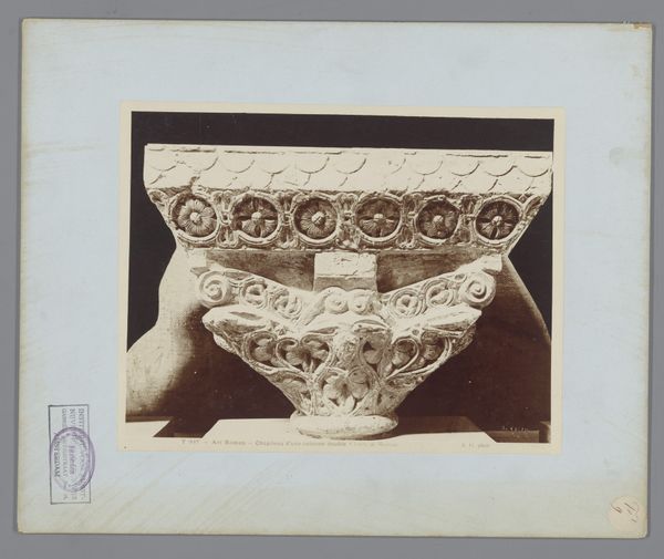 Adolphe Giraudon captured this image of a capital from the Abbey of Moissac in France during a period of intense cultural and historical transformation. Born in the mid-19th century, Giraudon lived in a time where photography was emerging as a powerful tool for documentation and dissemination of culture. The Abbey of Moissac, with its Romanesque architecture and intricate carvings, represents a nexus of religious, political, and artistic forces from the medieval period. This capital, likely part of a larger architectural ensemble, symbolizes power and spirituality. The choice to photograph this capital reflects the interest in preserving and understanding historical artifacts, connecting the present with the past through visual representation. Giraudon’s photograph allows us to consider the role of religious institutions in shaping cultural identity, and how photography serves as a means of preserving and reinterpreting historical narratives. The image invites us to reflect on the ongoing dialogue between art, history, and cultural memory.