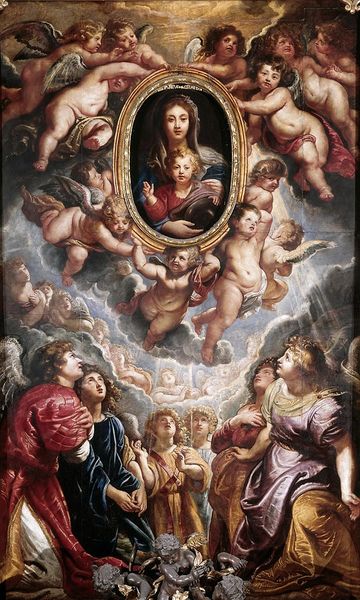 Claudio Coello's La Anunciación, painted with oil on canvas, surges with a dynamic swirl of figures and light. The dramatic composition pulls us upwards through earthly and celestial realms, evoking a sense of awe and spiritual elevation. Coello's strategic use of light and shadow carves out a visual hierarchy. Observe how divine light emanates from the Holy Spirit at the composition's heart, cascading downwards to illuminate Gabriel and Mary. This interplay of light isn't merely decorative; it's a deliberate encoding of divine presence. The density of angels and figures creates a bustling, energetic space which suggests Baroque art's preoccupation with movement and emotion. The painting skillfully navigates the semiotic codes of its time, balancing religious symbolism with an artistic license that pushes beyond mere illustration. The composition suggests a world where the boundaries between heaven and earth are fluid, and where the act of painting itself becomes a conduit for the divine.