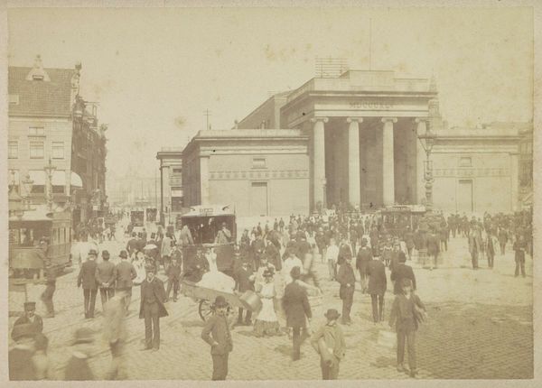 This is a photograph of the Dam Square in Amsterdam, captured by Andries Jager. On the right stands the Beurs van Zocher, its neoclassical facade dominated by imposing columns. These columns are not merely architectural supports; they evoke the temples of ancient Greece and Rome, symbols of democracy, philosophy, and trade. As we trace this motif through history, we see it reappear in diverse contexts, from Renaissance palaces to modern government buildings. The meaning shifts—sometimes representing power, other times stability or tradition. The collective memory of classical antiquity, deeply embedded in Western culture, lends these columns a psychological weight. They stir something within us, a recognition of foundational values. Note how the bustling street teems with people, their faces obscured, yet their collective presence vital. The motifs and iconography are never fixed; they are in constant flux. They resurface, evolve, and take on new meanings, engaging us in a continuous dialogue between past and present.